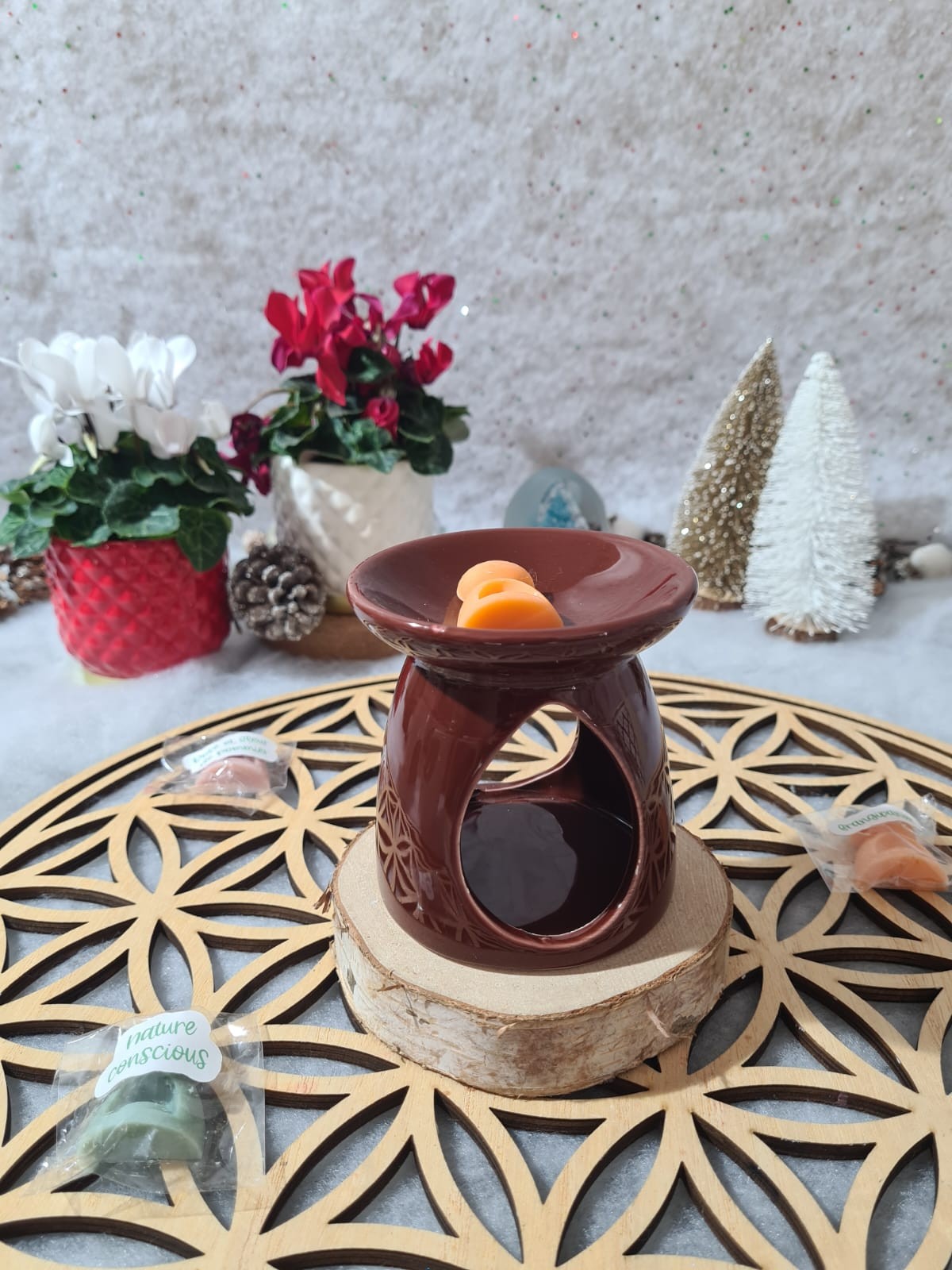 Brûle‑parfum en céramique rouge terre, inspiré des nuances chaleureuses de la terracotta. Ses découpes ajourées laissent apparaître de jolis motifs lumineux lorsque la bougie est allumée. Idéal pour fondants parfumés, il apporte une touche naturelle et artisanale à votre intérieur.