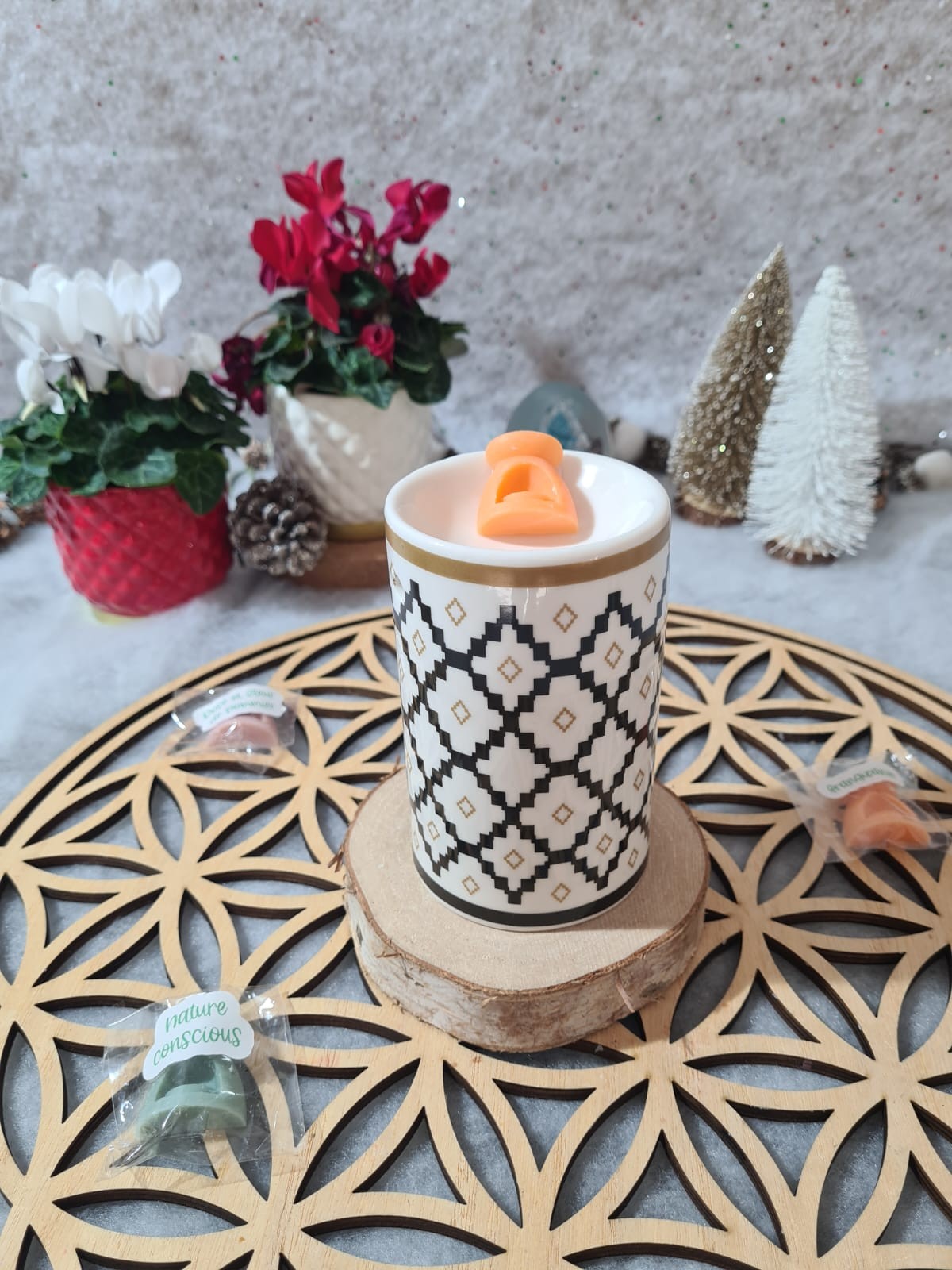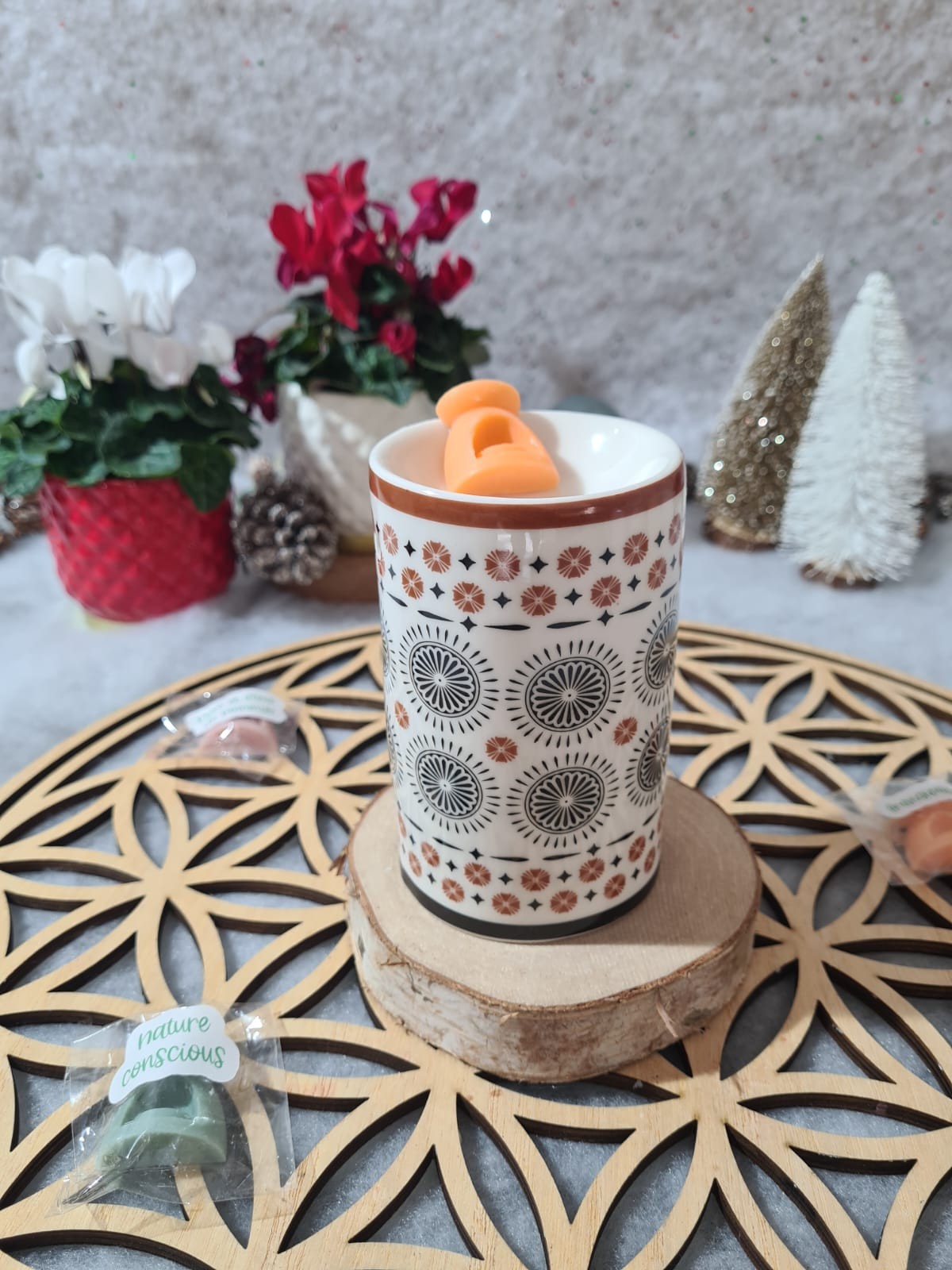 Utilisation du brûleur : Déposez un fondant parfumé dans la coupelle supérieure du brûleur. Placez ensuite une bougie chauffe-plat allumée dans l’espace prévu à la base. La chaleur fera fondre le fondant et diffusera progressivement son parfum dans votre intérieur. Éteignez la bougie lorsque vous souhaitez arrêter la diffusion et laissez le fondant refroidir avant de le retirer ou de le remplacer.