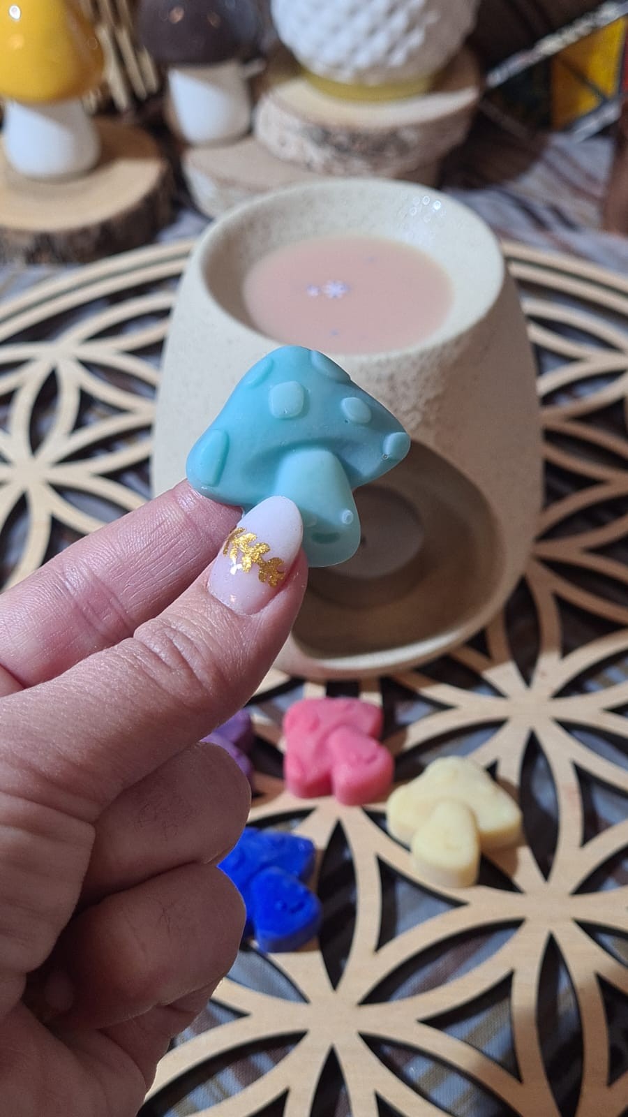 Chaque champignon est façonné avec soin et parfumé avec des fragrances sélectionnées pour leur pouvoir réconfortant. En fondant, il diffuse un parfum délicat qui transforme l’atmosphère et crée un véritable rituel de bien‑être.