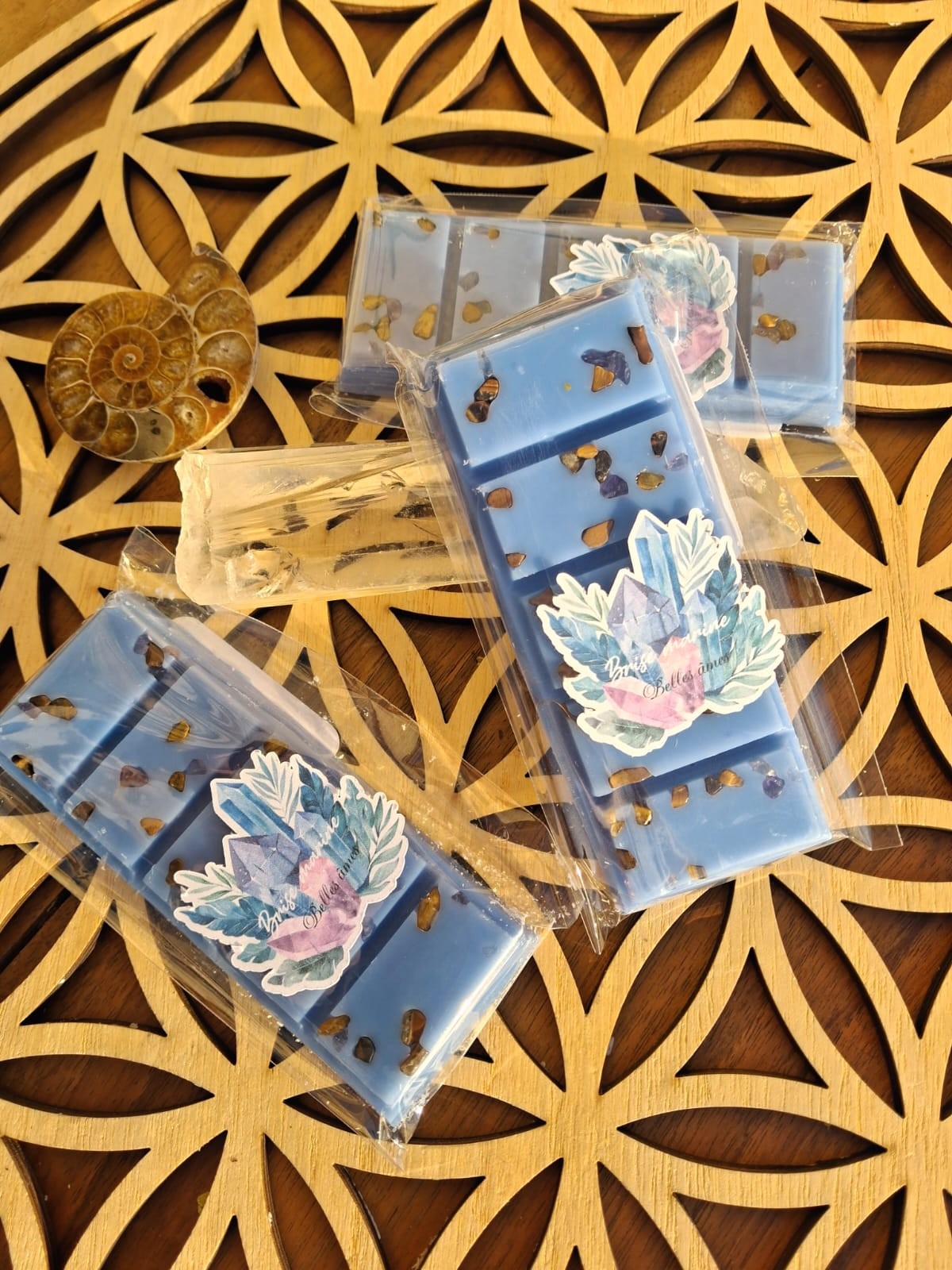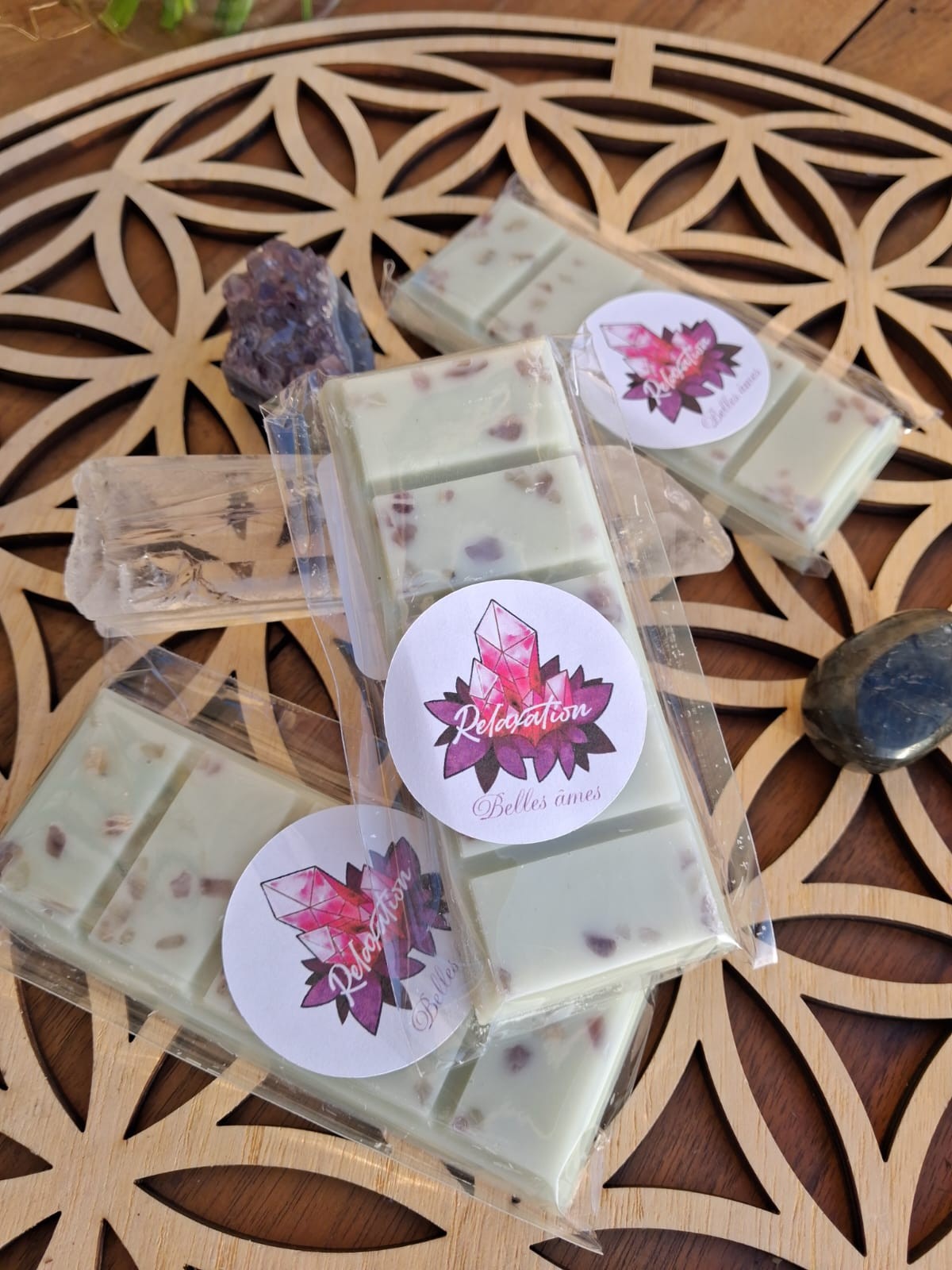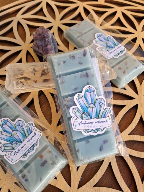 ✨ Fondants parfumés – Tablettes 47 g (cire d’olive & pierres naturelles)